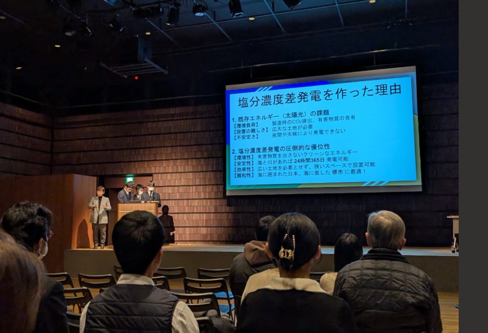 この発表会には、泉北高校、泉陽高校からも発表がありました。泉北も泉陽も生物系の発表でありました。そこに堺工科は自分の専門性を十分に発揮した工学の課題研究発表!。自分ところのもんを、えこひいきして褒めちゃいます!!題材も「脱炭素化社会に向けた堺の環境を利用した発電」。