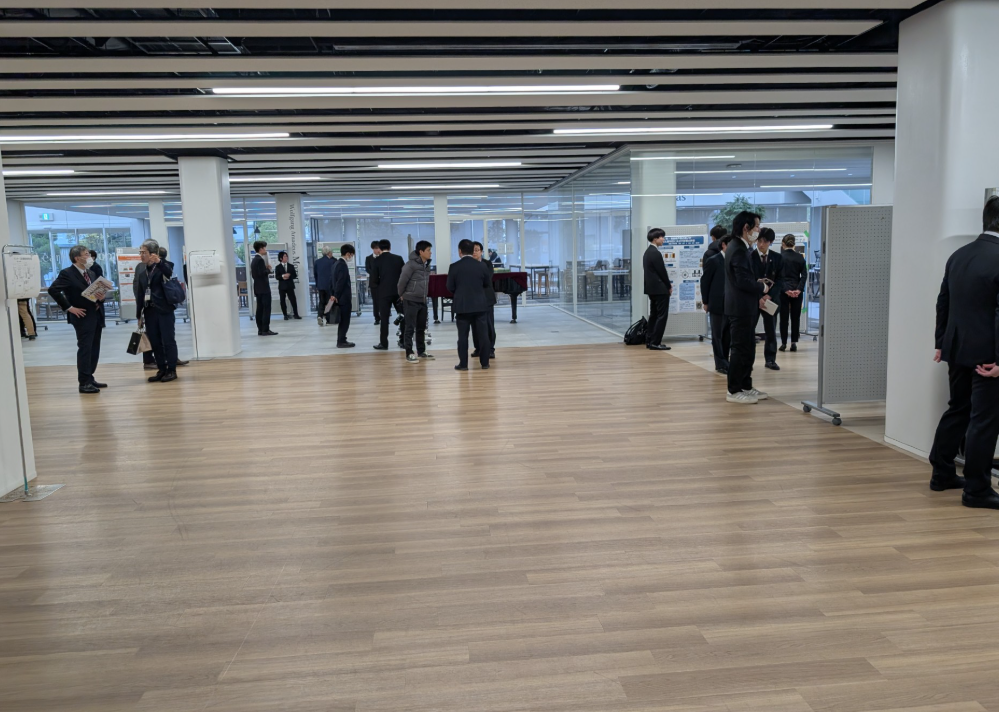 開催されたのは、各種学会開催でも実施されるポスターセッションを想定し整備されている摂南大学3号館、44ものポスターと説明者は圧巻であり、かつ、余裕ある空間でありました。