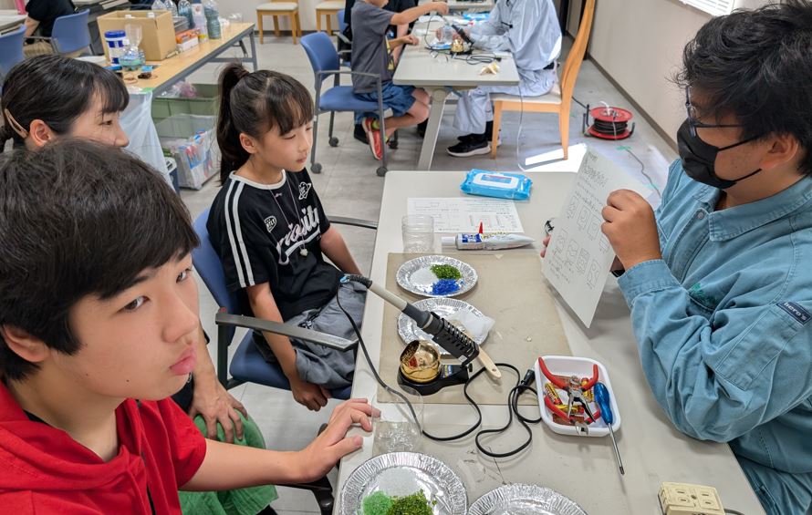 さてさて、土曜日には、泉北クリーンセンターで夏休み宿題&自由研究イベントで、堺工科電子工作部がLEDキャンドル製作を行いました。また、アリオ鳳では、堺工科ものづくりワークショップをアリオ鳳さま、大阪府教育庁高校改革課の先生方の支援を受けて実施。